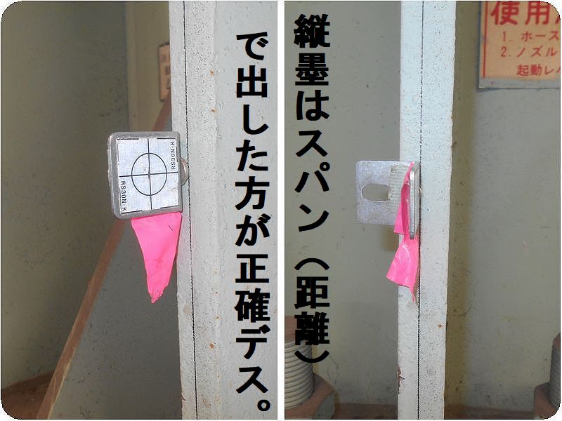 ■ 柱の縦墨には直角でなく、スパン長にて墨出し!